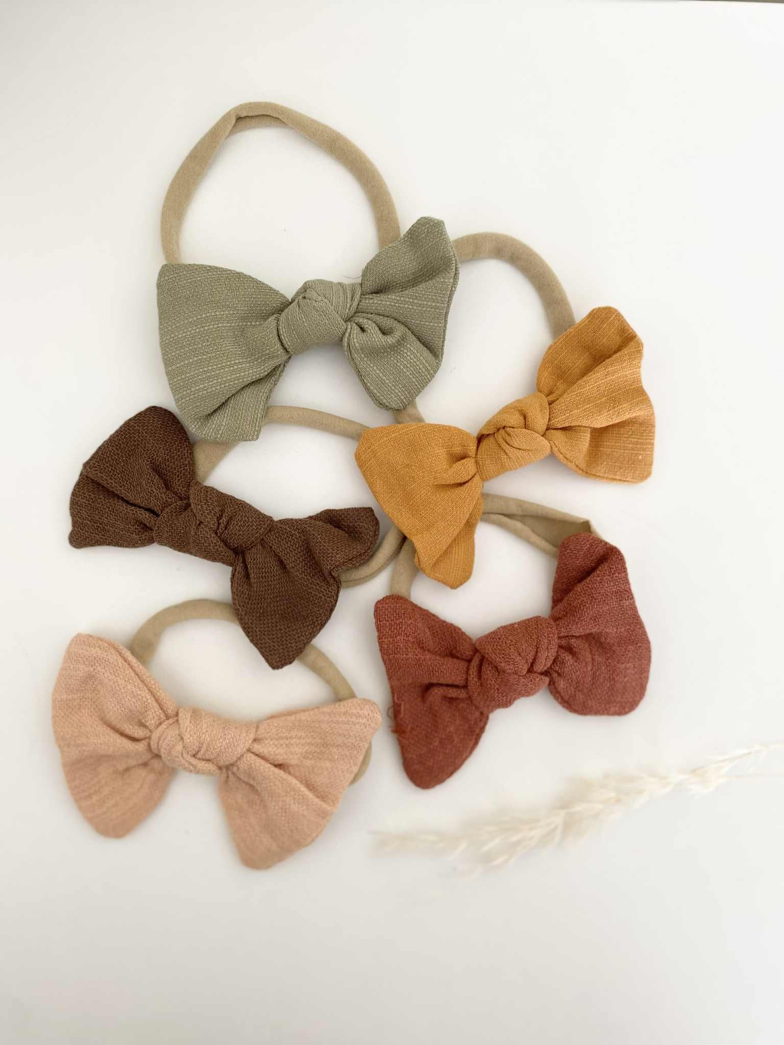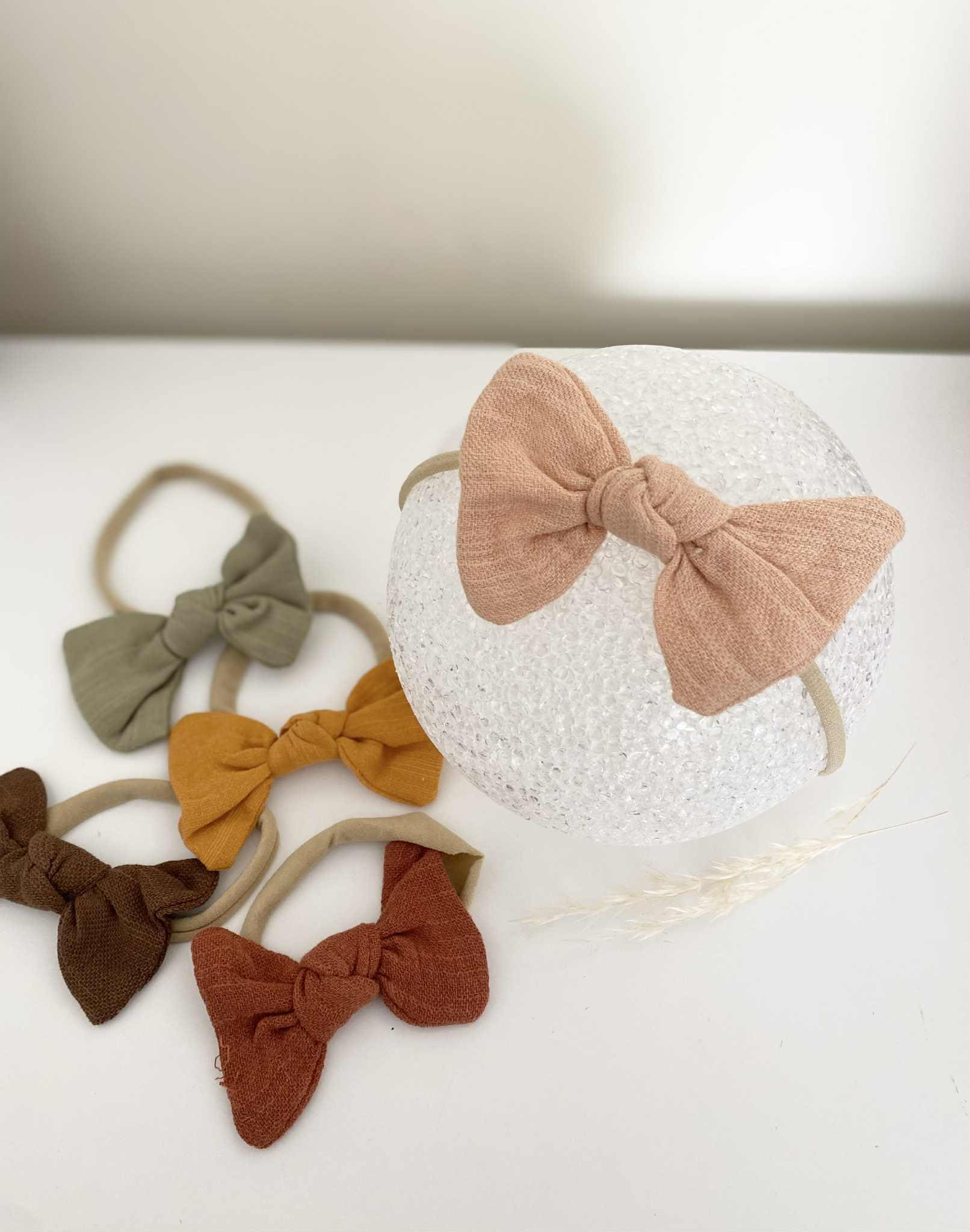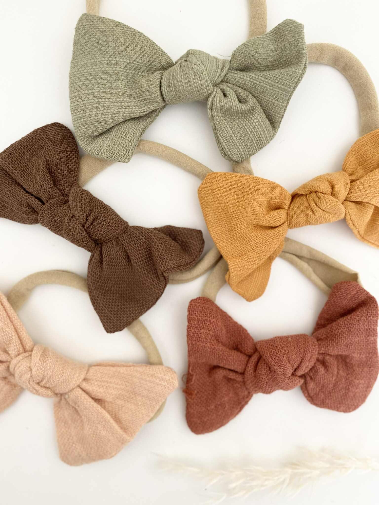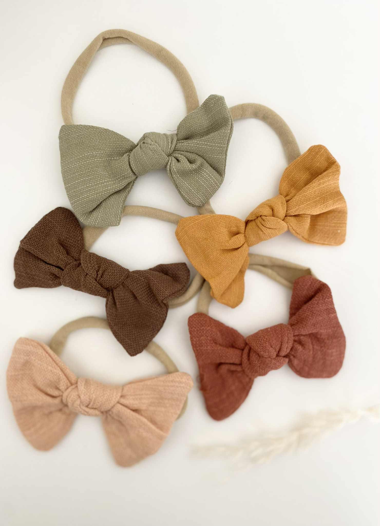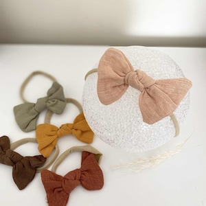 Discover adorable bow headbands for babies in autumn shades, made from soft nylon for a comfy fit. Perfect gift for baby showers and birthdays.