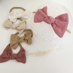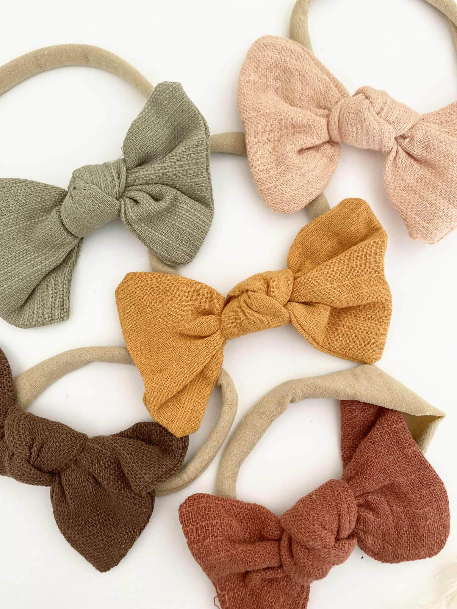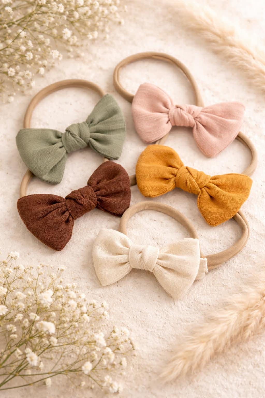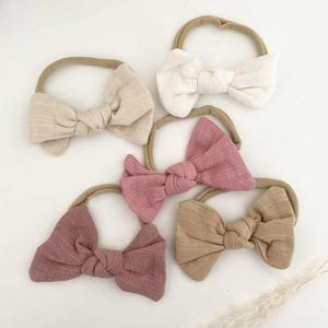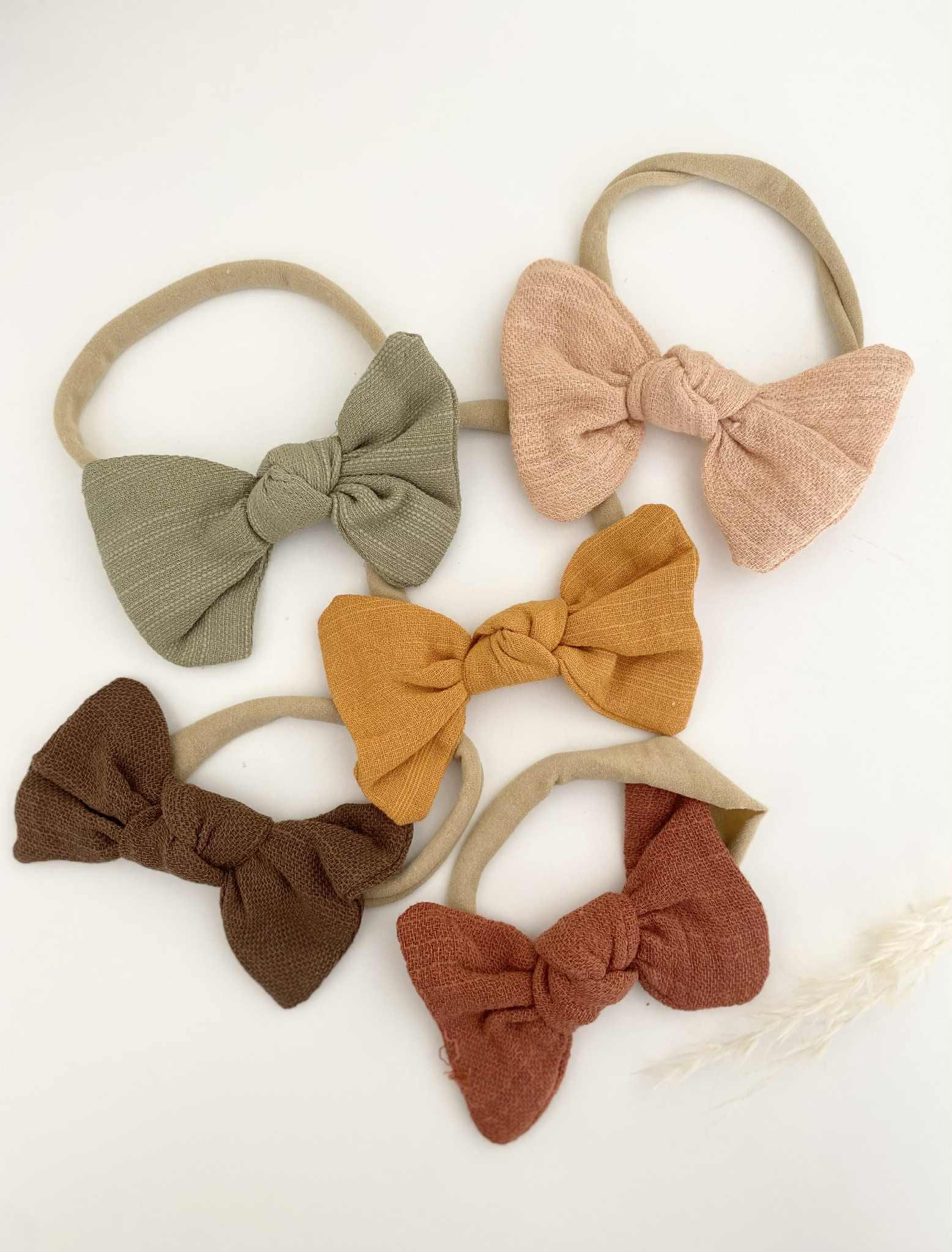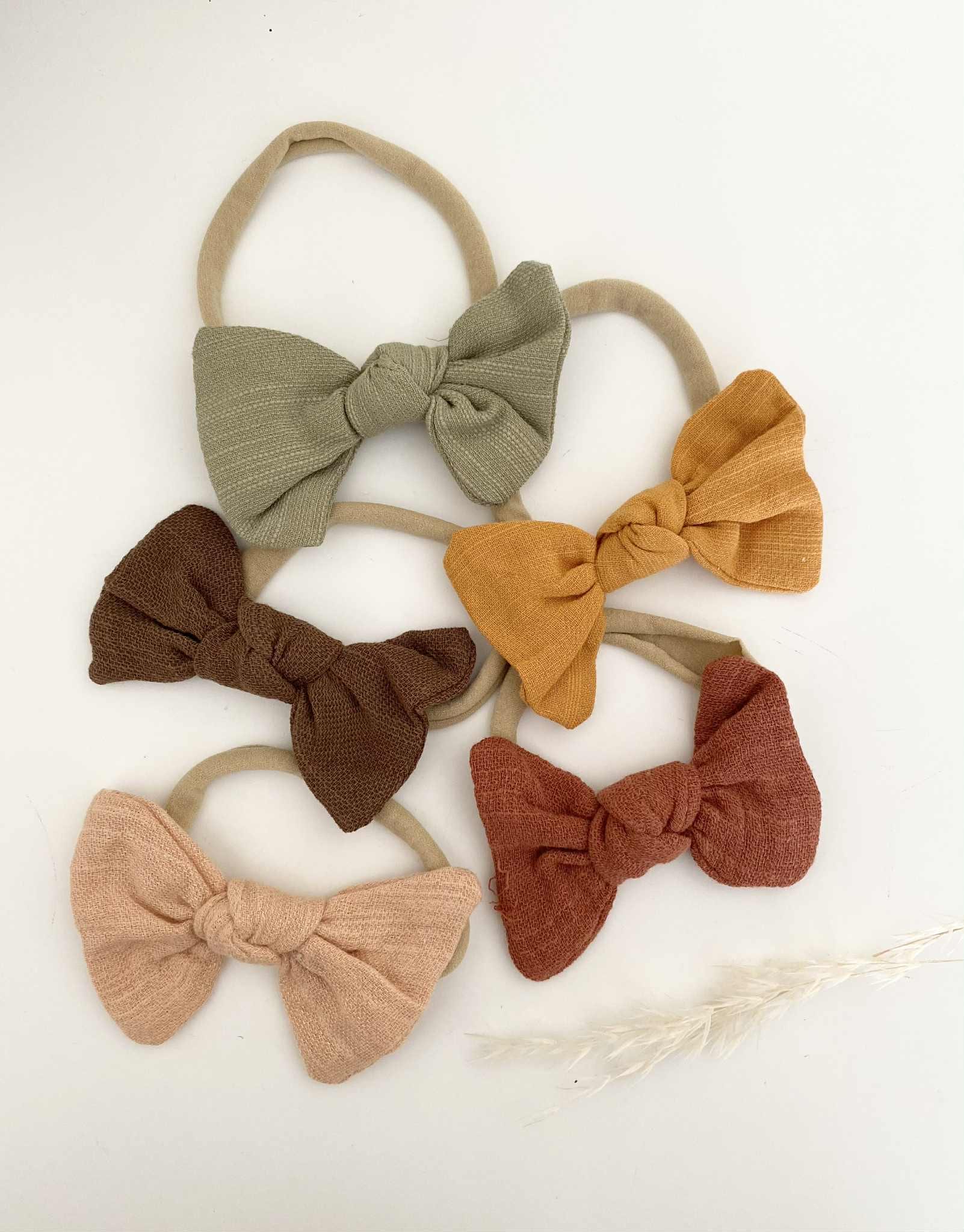 Discover adorable bow headbands for babies in autumn shades, made from soft nylon for a comfy fit. Perfect gift for baby showers and birthdays.