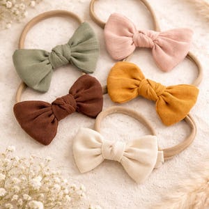 Discover adorable bow headbands for babies in autumn shades, made from soft nylon for a comfy fit. Perfect gift for baby showers and birthdays.