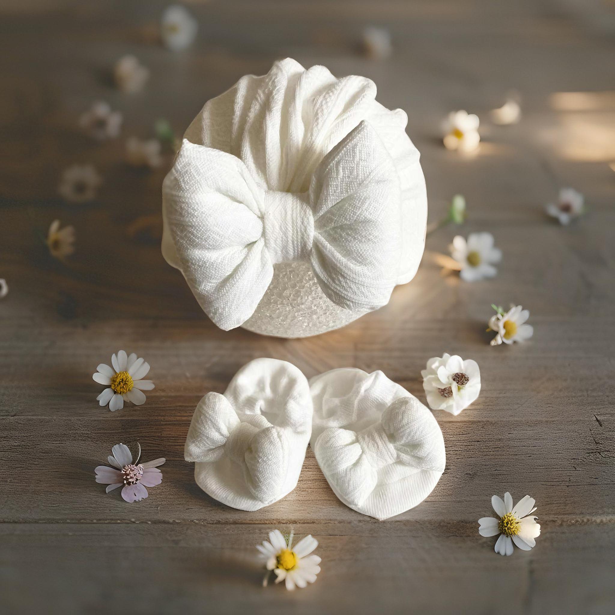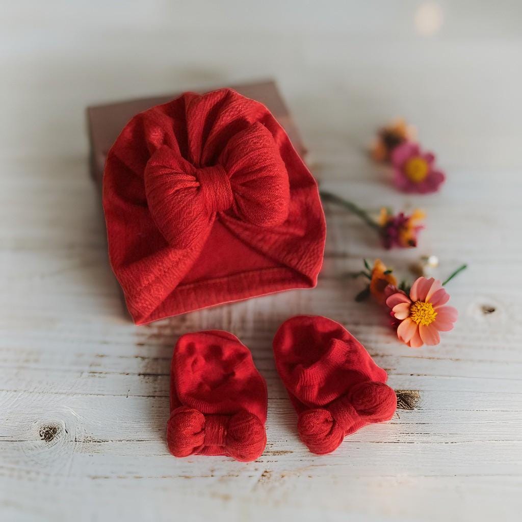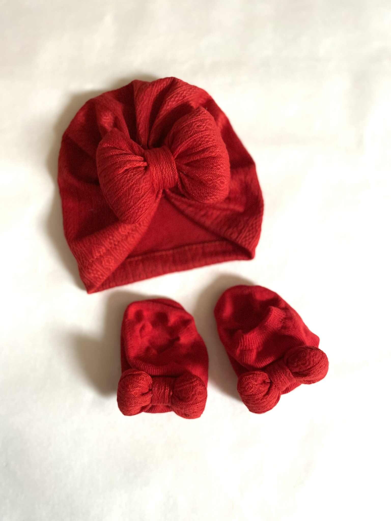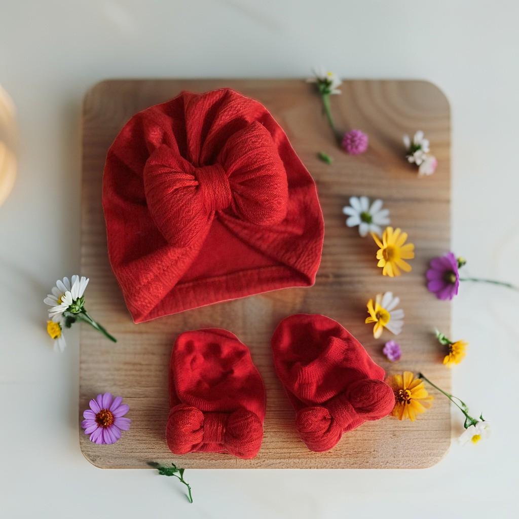 Introduce your little one to a world of charm with our Newborn Baby Girl Hat and Booties Set. This adorable set, in festive red and white, features a comfortable hat and cute booties, each adorned with a large, elegant bow. Made from soft, gentle fabric, it's ideal for Christmas or as an all-year-round accessory. It arrives beautifully packaged, making it a perfect gift choice for new parents. Care Instructions: Maintain the set's quality by hand washing with a small amount of mild soap or detergent. Avoid using a dryer to keep the fabric's integrity and elasticity intact.