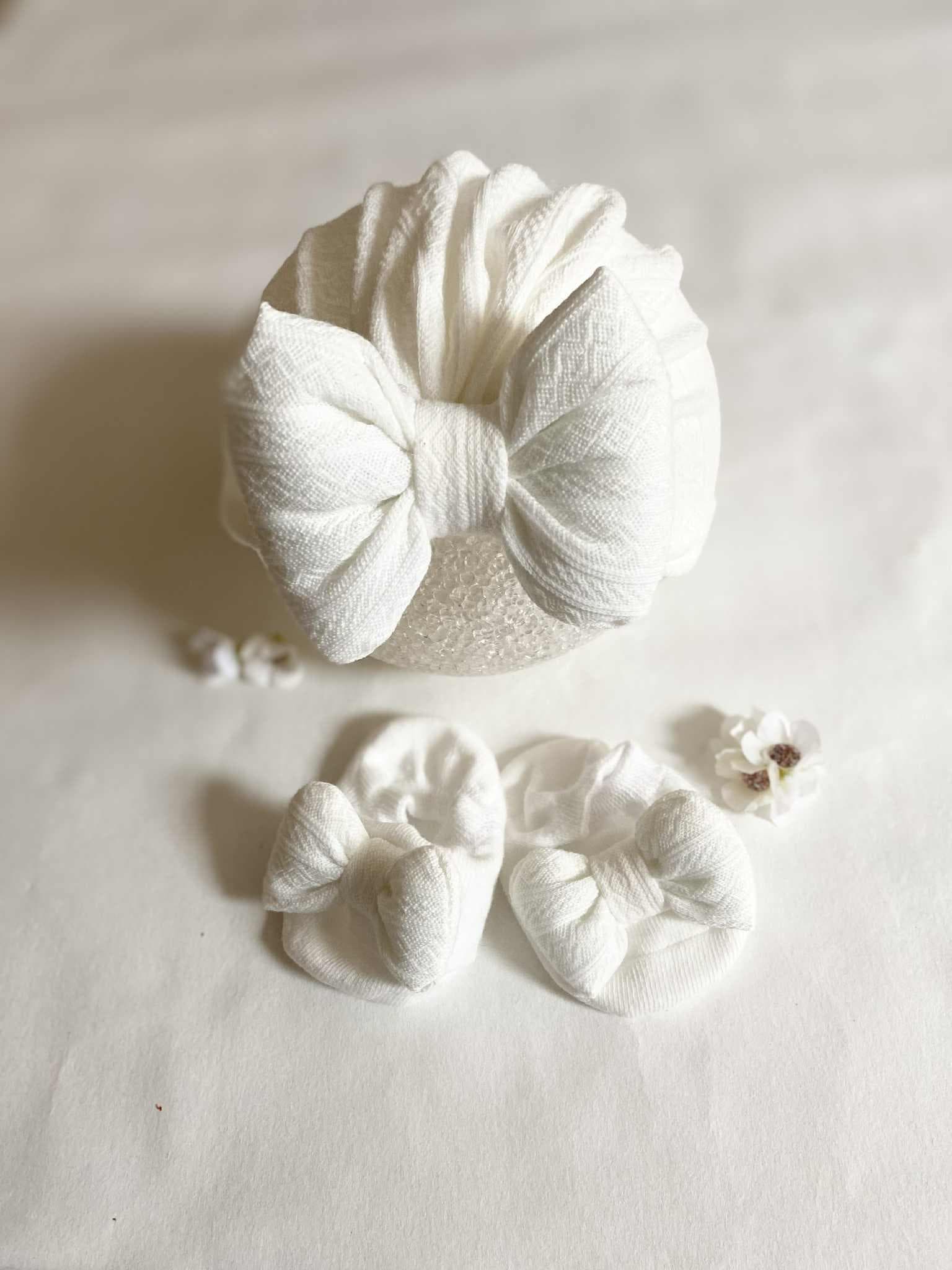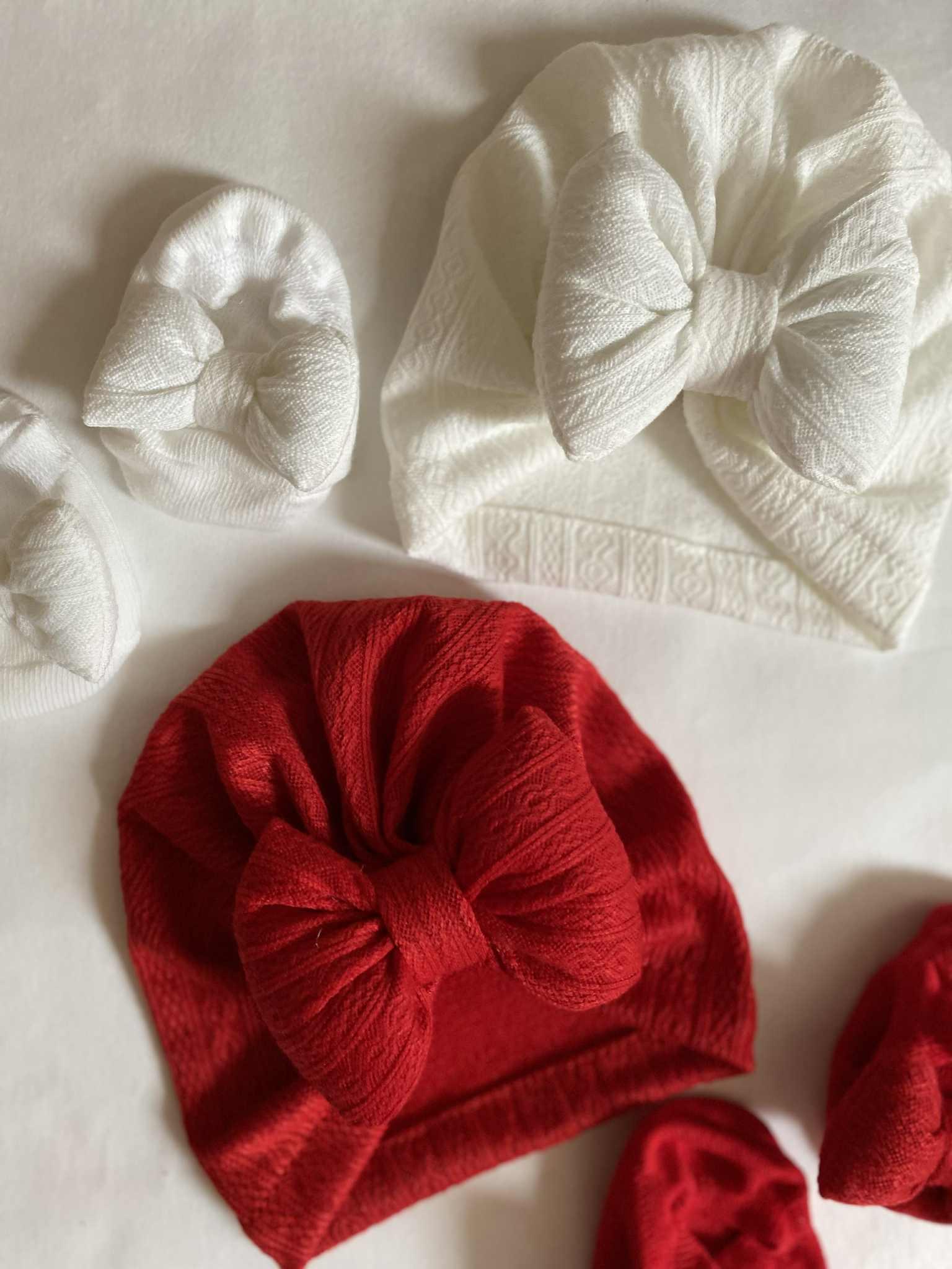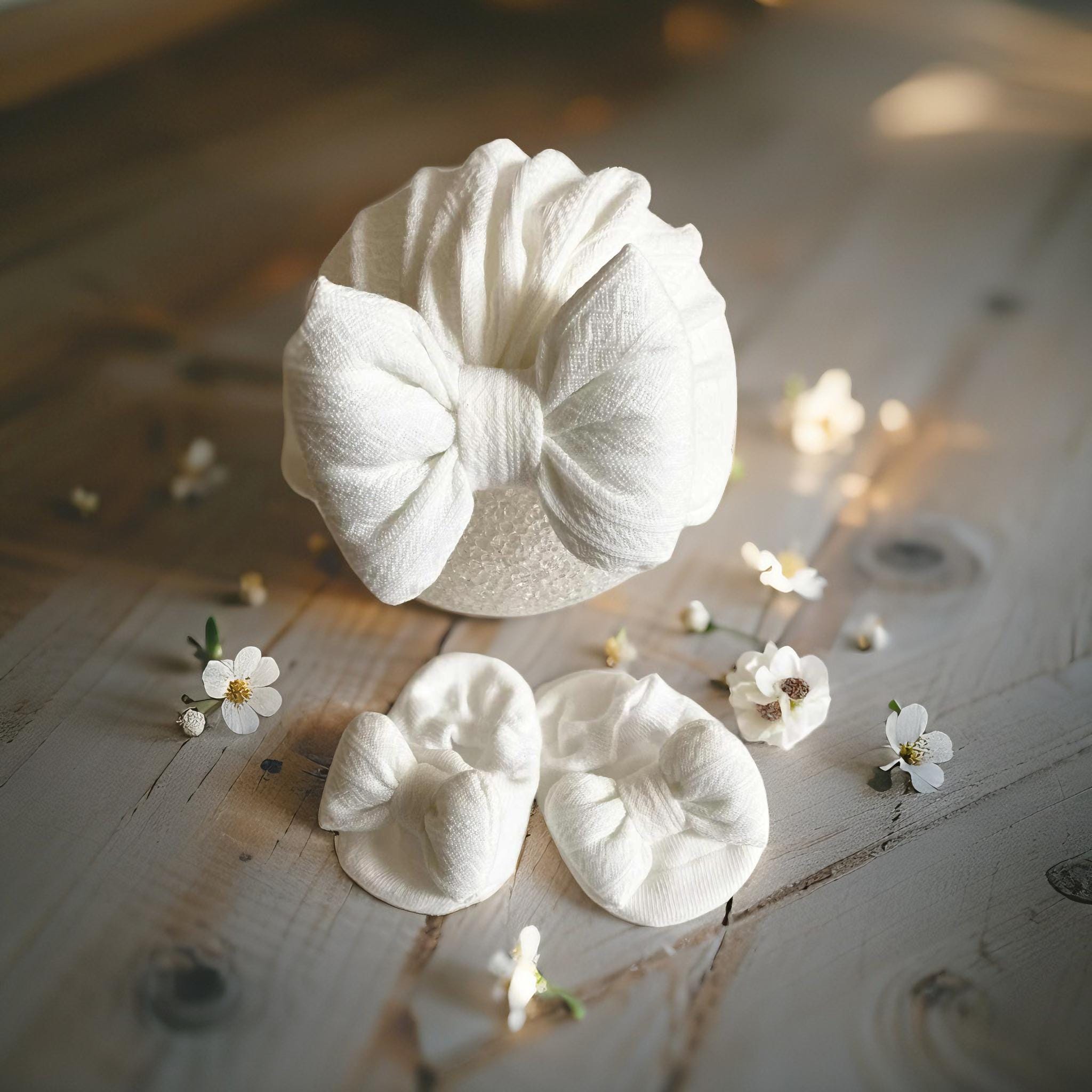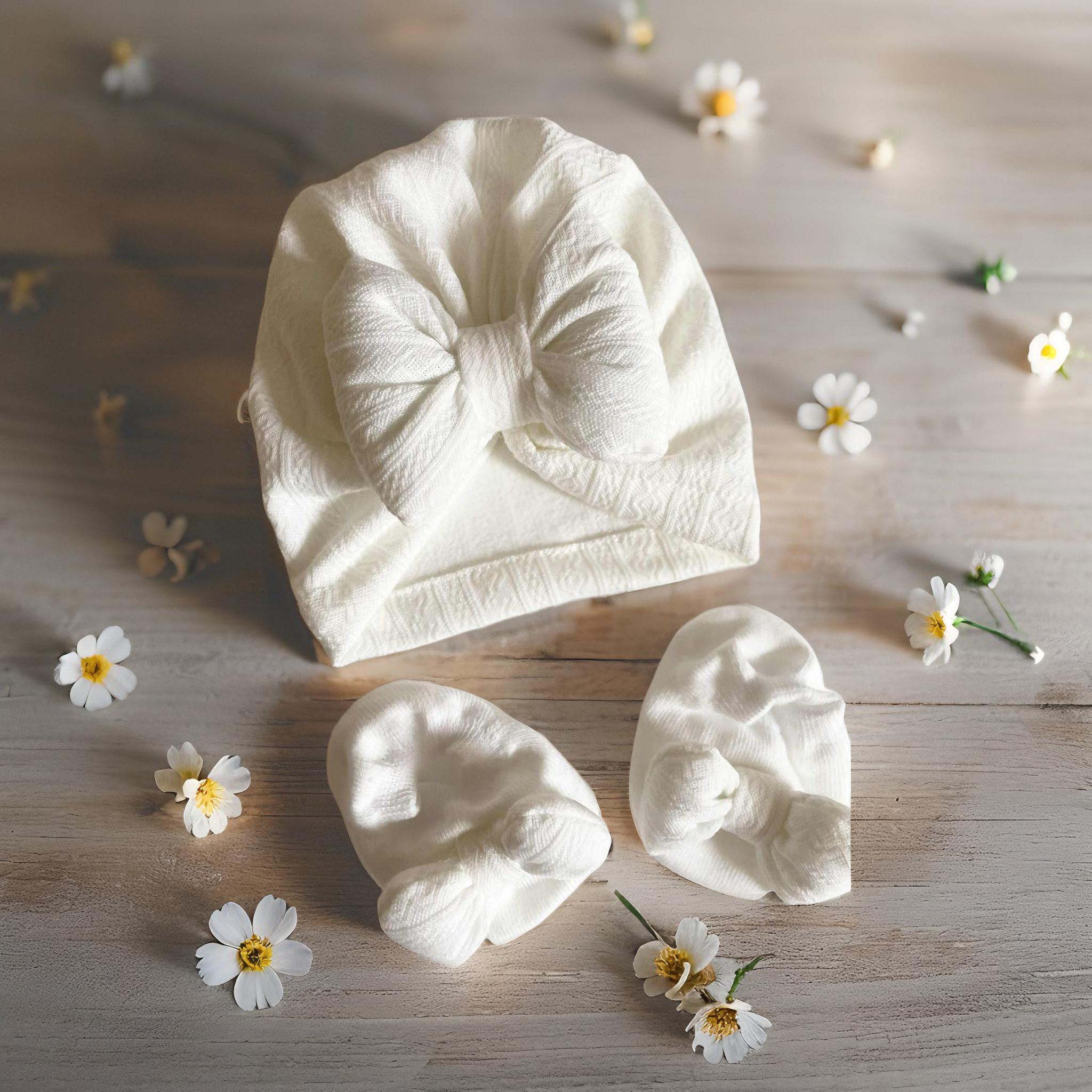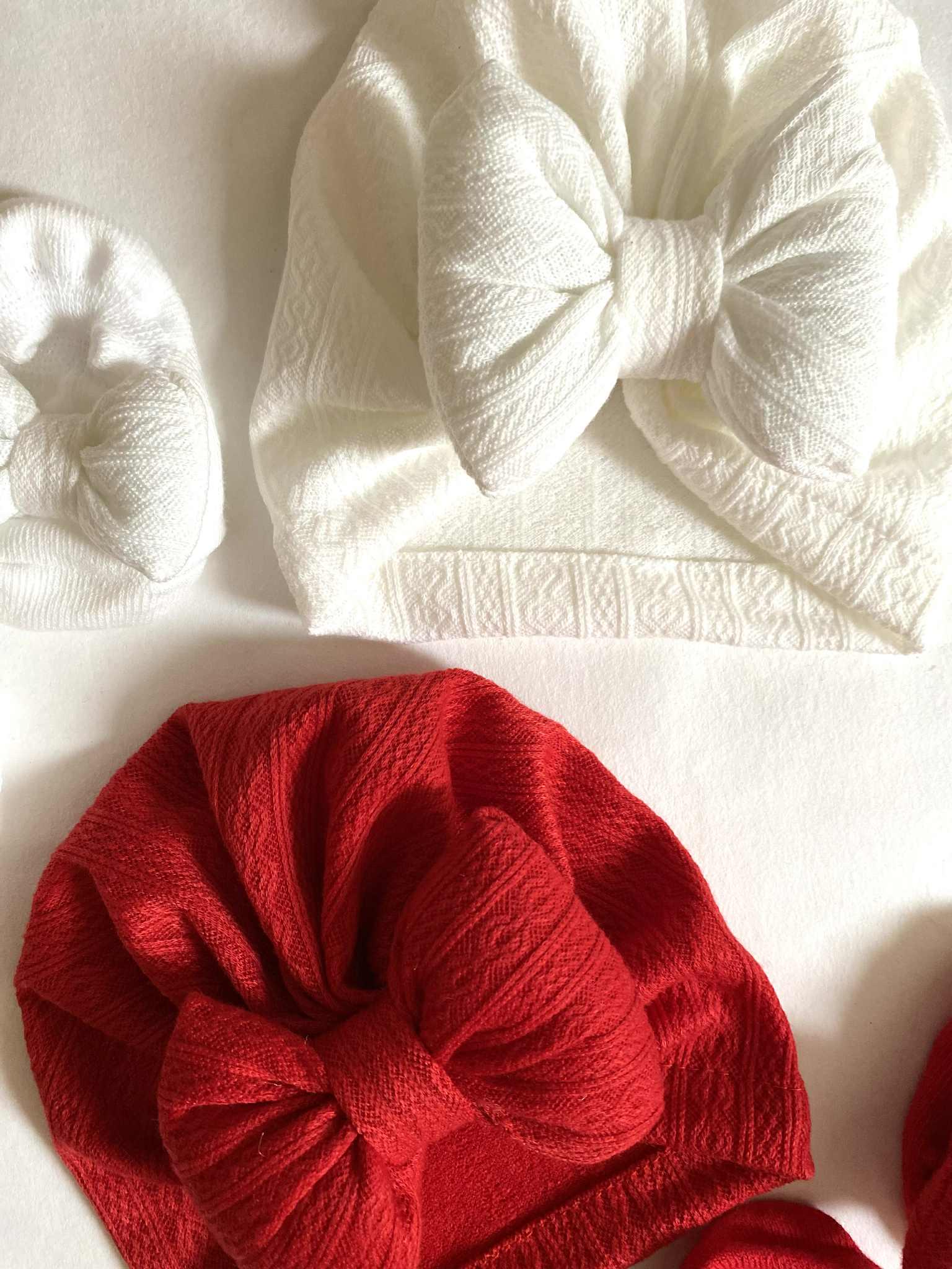 Introduce your little one to a world of charm with our Newborn Baby Girl Hat and Booties Set. This adorable set, in festive red and white, features a comfortable hat and cute booties, each adorned with a large, elegant bow. Made from soft, gentle fabric, it's ideal for Christmas or as an all-year-round accessory. It arrives beautifully packaged, making it a perfect gift choice for new parents. Care Instructions: Maintain the set's quality by hand washing with a small amount of mild soap or detergent. Avoid using a dryer to keep the fabric's integrity and elasticity intact.