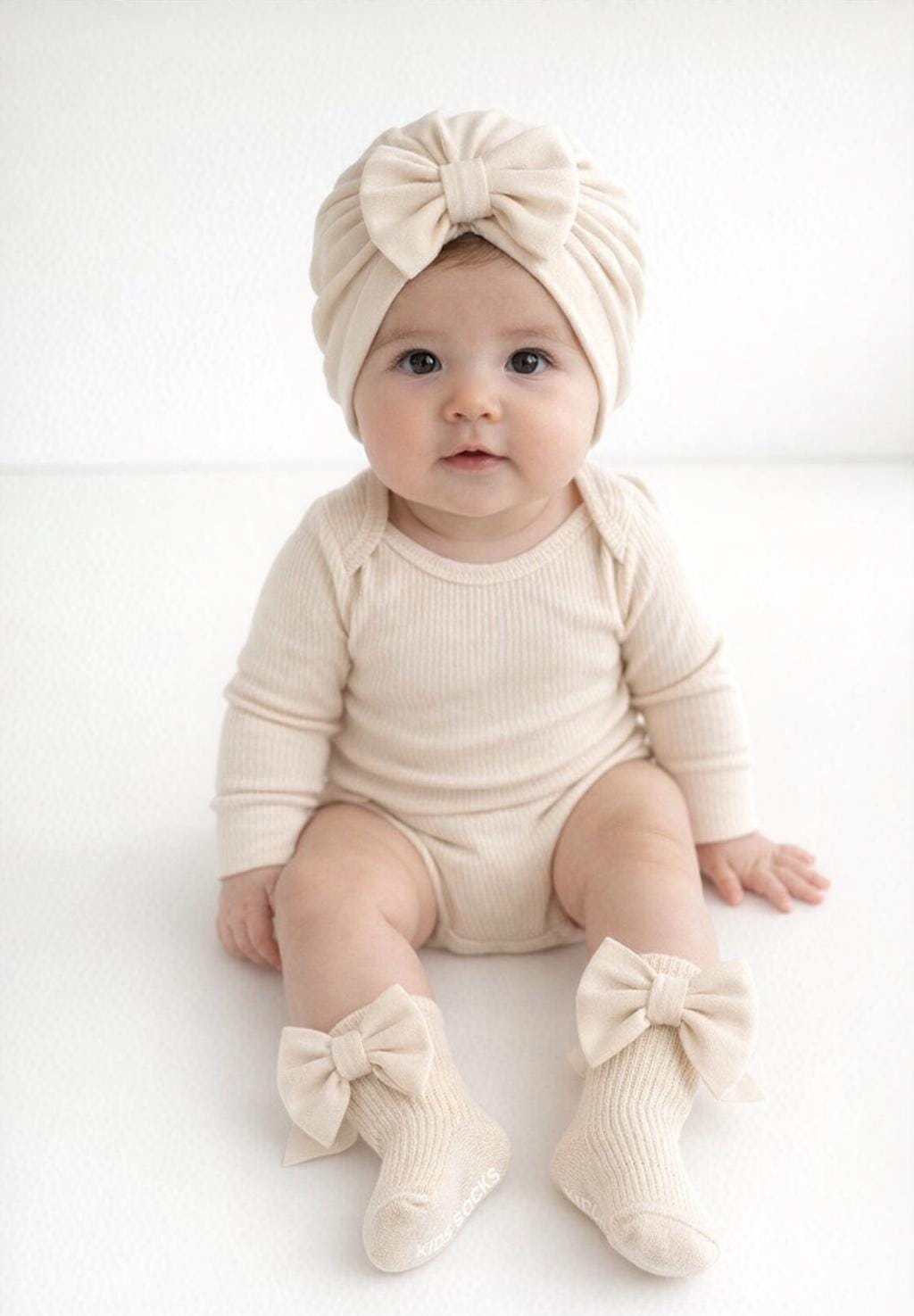 Baby Headband and Socks Set, Infant Turban, Baby Newborn Gift, Baby Shower Set, Baby Girl Set, Baby Sommer Set, Newborn Gift