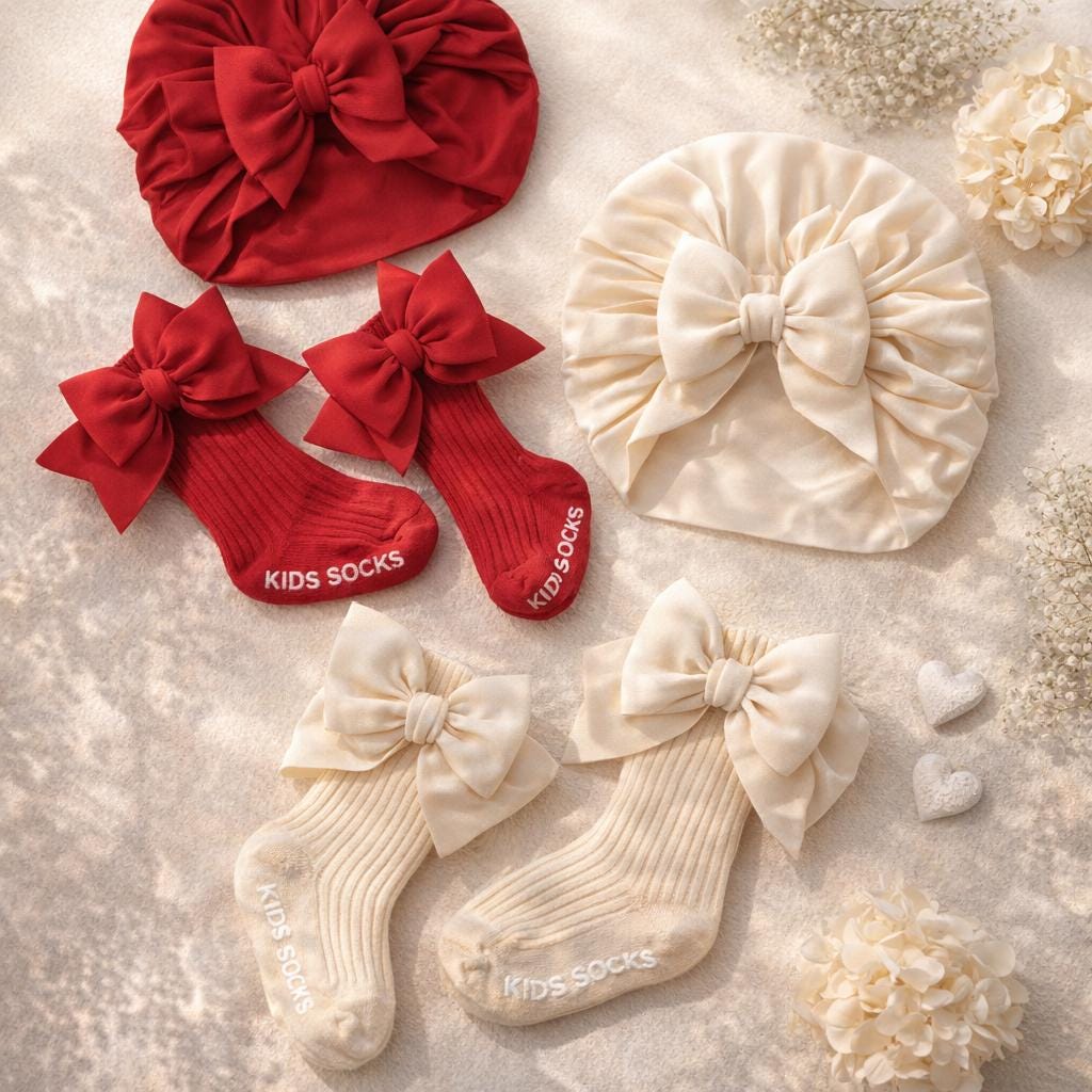 Pamper your little girl with our charming baby headband and socks set, Available in four beautiful earthy tones, this set is designed to fit infants from 0 to 3 months, making them look adorable for any occasion. Whether you're attending a christening, wedding, or a baby shower, this gift set is perfect for creating precious memories.